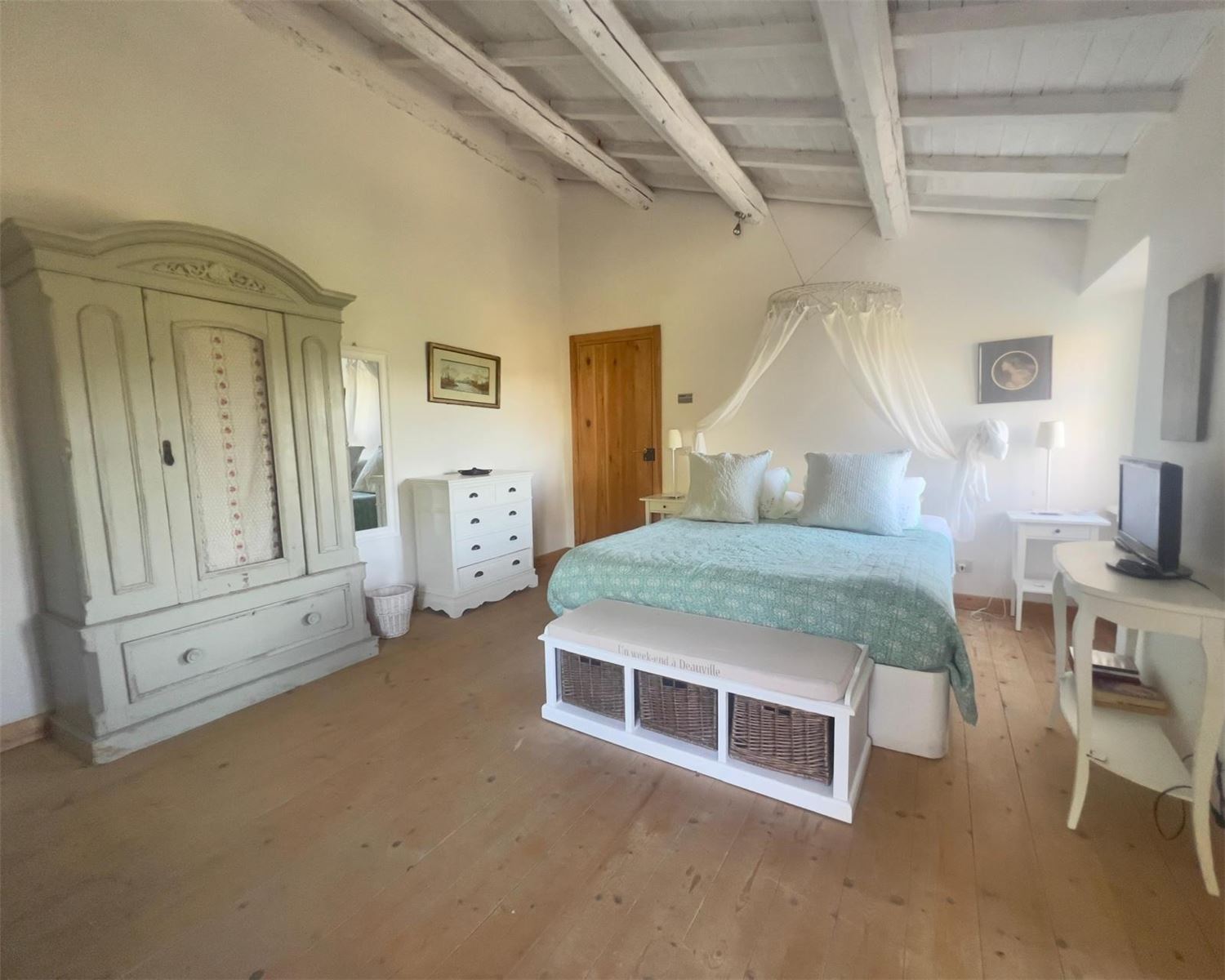 A large terrace at the front makes the most of the views to the local hilltop town and overlooks the pool. There are comfortable rattan sunbeds, and a stylish sitting out area with a great cushioned mattress for lounging around on. Jasmine and kiwi clad the shady metal gazebo attached to the front of the house, where the large outdoor table and chairs is a perfect place for long lunches and suppers.